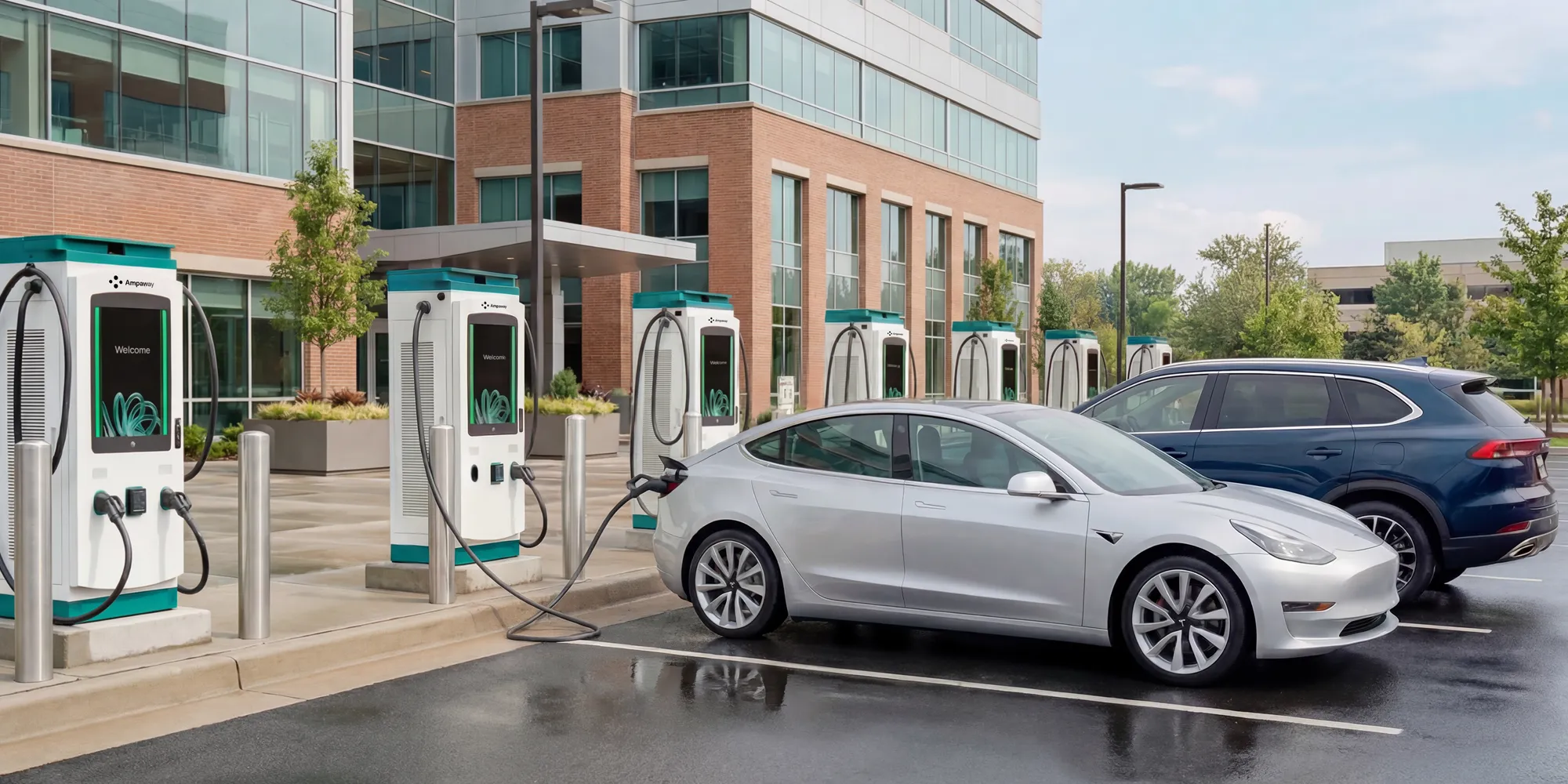 Ampaway handles permitted installation, system setup, and activation. If you plan to install an EV charger at a business parking, the chargers are brought online with minimal disruption.
